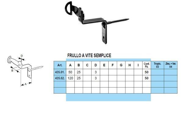 Tipologia di prodotto realizzato in acciaio/zama destinato al montaggio a parete, tramite apposito tassello, per bloccaggio di scuri e persiane in posizione di apertura.